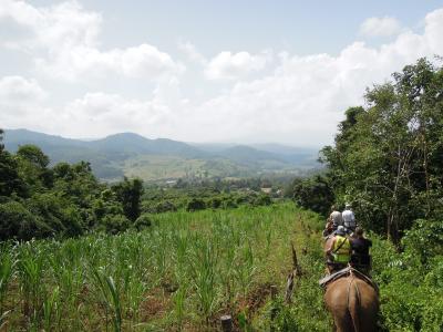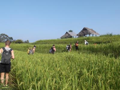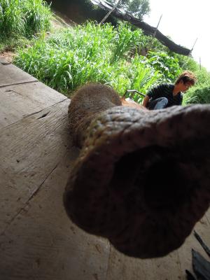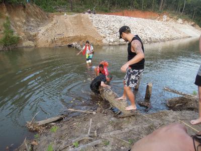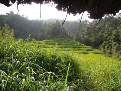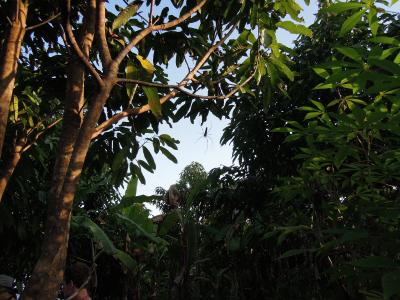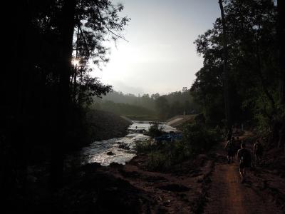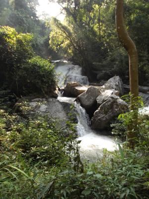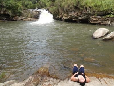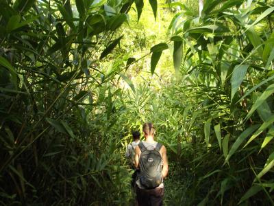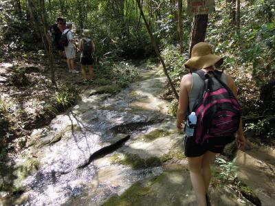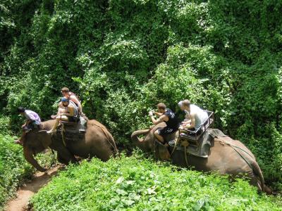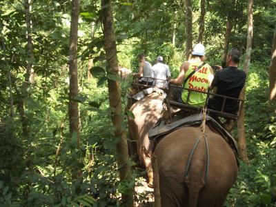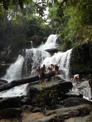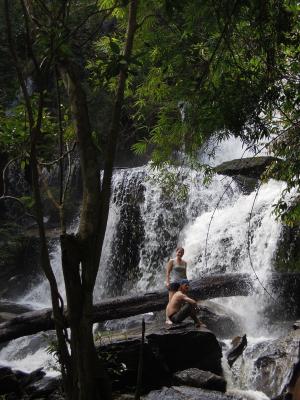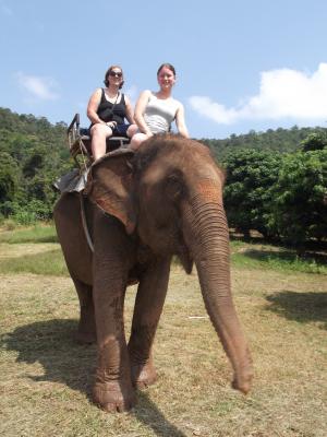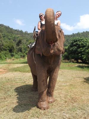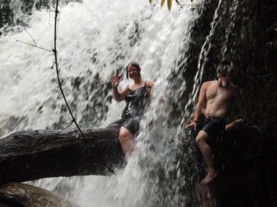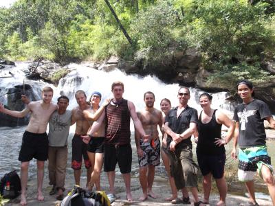 Am Montag morgen gegen 9:00h gings los, wir hatten zunächst nur einen Rucksack für uns zu zweit gepackt und hatten den Plan uns mit dem Tragen abzuwechseln.. Eingestiegen in ein yellow Taxi und einmal die anderen angeschaut war unsere Tasche doch schon viel Größer als alle anderen.. wir entschieden uns um und Anna kaufte bei einem kurzen Einkaufsstop noch einen TOP Jack Wolfskin Rucksack! ;) Der immerhin den Trip überstand und erst danach vollkommen schrott im Müll landen durfte! Mit zu unserem Trip kamen 2 Schotten, 2 Engländer, 2 Kanadier und eine Kanadierin und natürlich 2 Thai Guides! Die Jungs und Mädels waren alle samt super! Der Nachteil war einzig, dass nur Anna und ich kein Englisch sprechen konnten.. zumindest nicht als Muttersprache :) Wir nutzten die Chance und lernten auf dem Trip! Z.b. was Gabelstaplerfahrer heißt :D Die Trekking Tour startete für uns mit einem Elefantenritt.. Mit dem Taxi fuhren wir hoch in die Berge und dort wartete Kapang ein, ich finde, ziemlich großer Elefant auf Anna und mich. Wir kauften eine Staude Bananen und konnten ihn so während des ca. 45 minuten dauernden Ausflugs immer schön mit Bananen bestechen.. Es ging über Stock und stein, durch Pfützen und den Regenwald... es schwankte sehr stark :) Anna hatte das Glück und konnte auch noch ein kleines Stück auf dem Platz des Mahout (der Elefantenführer) sitzen direkt hinter seinen Ohren :) nach diesem Stop gings noch mal ins Taxi.. ein kurzes Mittagessen irgendwo im Nirgendwo und dann nochmal ein STück den Berg hoch.. An einer Stelle wo einfach gar nix war, nichtmal ein Platz zum Anhalten lies uns der Fahrer raus und wir machten uns auf unsere Wanderung durch den Dschungel... Als erstes verwunderte uns eine Sirene die unaufhörlich heulte... man erklärte und es seinen Käfer, die diese Geräusche machen.. Verrückt! Später fanden wir auch noch eine leere Käferhülle (die scheinen sich in ihrem nur 3 Monatigen Leben 3x zu häuten), die uns zeigte wie klein diese sehr lauten Viecher sind! Wir wanderten über Stock und STein.. immer rauf und runter.. aber nicht etwa über Wege, ne wir gingen gerade da lang wo man irgendwie lang kam.. Hat mega Spaß gemacht :) Leider war es auch sehr anstrengend.. Als wir dann an unserem ersten Wasserfall ankamen konnten wir uns nicht zurück halten und sind mit allen Klamotten ins Wasser gehüpft! Amazing so ein Wasserfall! Wir sind auch sogar durchgekrochen und haben dann mal auf der vermeintlich trockenen Seite gestanden und durchgeguckt! WOW! Viel zu schnell ging es dann weiter.. noch steiler bergauf.. ich bin dann leider auch einmal abgekackt.. Da ich leider aufgrund der bergigen Fahrt und des schunkeligen Elefantenritts etwas wenig gegessen ha be (mir war etwas schlecht) fehlte mir jegliche Energie bei gefühlten 40Grad Berge raufzukraxeln.. Naja es ging dann irgendwann auch wieder und alle waren sehr lieb zu mir und ich habe einfach die Konsequenz gezogen mich mal wieder etwas mehr um meine Kondition zu kümmern ;) Später mussten wir noch über einen Baumstamm im Wasser balancieren, das war ein kleiner Höhepunkt des Tages! Mit etwas angst ums Gepäck hat es dann aber gut geklappt.. vor allem natürlich weil Anna mit ihren Kletterparkerfahrungen natürlich im Schlaf darüber wandern kann und mir schön geholfen hat :) Leider hat sie dem armen Dave (der im Übrigen schon um die 10 Chang-Biere intus hatte) nicht geholfen und promt fiel dieser auf dem letzten Meter in den dreckigsten Abschnitt des Gewässers.. Oh haben wir gelacht :D Nach einem kurzen Stop in einem Dorf der Karen (eine Minderheit hier in Thailand) bei denen auch eine mega Spinne rumhing (ich versuche mal ein Foto hochzuladen) sind wir dann in unserem Camp angekommen in dem wir übernachteten. An einem Fluss gelegen stand da ne süße Bambushütte in der 15 Matratzen lagen schön mit Mosquitonetzen bedeckt.. aber ansonsten ziemlich offen für jegliche Viecher.. Nett saßen wir noch etwa bis 20h zusammen.. dann ging es mir leider nicht so gut und Anna war müde, so dass wir schön früh schlafen gingen :) Es ist im übrigen ein fürchterliches Gefühl, wenn man weiß mann kann nicht einfach nachts auf die Toilette, weil man womöglich von einer Kobra angefallen wird.. oder einer Vogelspinne oder was da sonst so in meinen Kopf rumgekrochen ist! Meine Kopflampe war ja auch leider noch im Rucksack und nicht bei mir! Morgens gings mir sehr schlecht.. Vollkommenes erliegen der Magen-Darm Gesundheit mit Erbrechen.. Großartig.. hatte ja eh schon nix gegessen und jetzt war ich auch nicht mehr in der Lage dazu.. Habe etwas mit mir gekämpft ob ich einen so anstrengenden Tag wie den vorherigen in diesem Zustand überstehen könne.. Aber Anna wäre ohne mich nicht da geblieben und ich hatte auch etwas schiss davor mit einem Motorradtaxi aus dem Dschungel geholt zu werden so dass ich mich zwang die Zähne zusammenzubeißen.. Und es hat auch gut geklappt.. Die Kanadier waren gut mit Medikamenten ausgestattet, die sie gerne mit mir teilten und so ging es mir am morgen des dritten Tages auch wieder richtig gut! Aber jetzt erstmal noch zum 2 Tag! Wir wanderten viel parallel zu einem Fluss mit gefühlten 100 Wasserfällen! Es war so beeindruckend.. Leider brauchte man häufig beide Hände um über alle Wurzeln etc zu kraxeln so dass es nicht so wirklich viele Fotos davon gibt! Stopp machten wir an 2en und konnten etwas baden oder relaxen.. Tiere habe wir auch ein paar gesehen.. Ameisen, die man essen kann, freakige Raupen, Frösche und natürlich Spinnen (eine war so groß wie meine Hand! ungelogen!).. aber zum Glück keine Schlangen! Mit den Spinnen hatte ich noch ein ganz besonderes Erlebnis.. Faul wie ich bin, dachte ich, ich nehme lieber den Weg rechts um den Baum herum, nicht wie die anderen links herum.. naja und da man ja immer schön auf den Boden schauen muss wo man hintritt habe ich das Spinnennetz der riesenspinne leider nicht gesehen bis ich mit meinem Gesicht mitten drin hing! Etwa 2