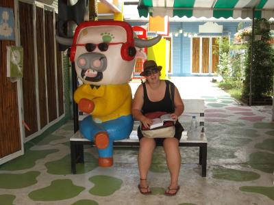 Gestern abend in den Nachtzug gestiegen.. da hat es tatsächlich bis halb 9 gedauert bis unsere Betten aufgebaut waren.. Frechheit.. sonst schlafen wir zu der Zeit schon ;) Dann war es leider auch eiskalt unter der Klimaanlage und zum krönenden Abschluss haben wir auch noch beinahe den Ausstieg verpasst.. ich war gerade am Zähneputzen, als der SChaffner sagte "raus, raus" aiaiaia.. aber geschafft haben wir es.. Schön ne Stunde auf den Transferbus gewartet, der uns zum Pier bringen sollte.. als er dann mit ner halben Stunde Verspätung losfuhr dachten wir kurzfristig, dass wir in den 7 Wochen vermutlich nirgends mehr ankommen würden.. Er fuhr so langsam, dass uns fast die Radfahrer überholten.. Endlich am Meer angekommen stiegen wir in den Highspeedkatamaran, der dann auch tatsächlich Vollgas gab und uns an wunderschönen Inseln vorbei, durch glasklares Wasser zu unserem Ziel, dem Paradies, brachte.. Auf Koh Tao angekommen sind wir zielstrebig zu Crystaldive, einer mehrfach ausgezeichneten Tauchschule, gegangen und haben gleich mal in einen schönen Ventilatorengekühlten Bungalow eingecheckt.. Kurz ins Dorf Pancakes gefrühstückt und dann ab an den Strand.. leider gabs den ganzen Tag keine Sonne.. deshalb hab ich mich auch gar nicht erst eingecremt.. naja was ich davon habe brauch ich euch wohl nicht zu sagen.. es leuchtet auf jedenfall sehr rot! Der Tauchkurs startet dann ab morgen mittag.. wir sind ganz aufgeregt und haben unglaublich viel bock drauf.. haben uns heute schon mal nen Schnorchel und ne Taucherbrille gekauft um die ersten Fische in der nähe des Strandes zu observieren! Hat geklappt.. nur die GoProBilder hätte ich mir tatsächlich etwas schöner vorgestellt.. plööd! Joa.. sonst haben wir eben noch den Strand erkundet und nett gegessen während die Sonne unterging.. ich glaube hier ist es echt schön! :D Wir berichten, wie wir uns bei unseren ersten Tauchversuchen, vermutlich im Pool, anstellen! :) ... link (1 Kommentar) ... comment Freitag, 19. Oktober 2012