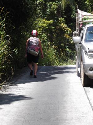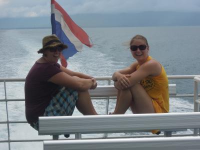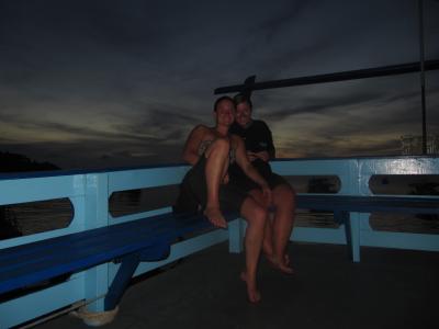 Also von Vorne! Gestern morgen wachten wir noch ganz normal auf und packten unsere Sachen.. Der Minivan holte uns pünktlich um 8 ab und es ging Richtung Krabi. Diesmal ging im Minivan alles gut, Anna haute niemandem den Fernseher an den Kopf (beim letzten mal wollte sie wissen, was das in der Decke ist und drückte einen Knopf und schwupps.. ein Fernseher donnerte runter und dem vorne sitzenden Beifahrer voll an den Hinterkopf).. Selbst die Klimaanlage funktionierte und war nicht zu kalt.. ein wunder.. In Krabi angekommen wurden wir aus dem Van geschmissen und der Umsteigekoordinator schmiss uns dann auch aus dem WArteraum.. "Hier Aufkleber für den Zielort kommt in eineinhalb Std wieder".. Ok.. wir gingen Frühstücken.. wurde auch Zeit und war der absolute Hammer.. Zwei andere die mit uns gefrühstückt haben verpassten dann ihren Minivan, aber Anna und ich waren pünktlich! Alles also soweit gut.. Wir in den nächsten Minivan, der brachte uns zum Pier der Longtailboote nach Railay.. Gut, dass es nicht da schon regnete.. (ACHTUNG IRONIE!).. Der Fahrer drückte einer Mitreisenden nen paar Baht in die Hand und die sollte dann unsere Longtailboottickets kaufen.. wow.. auch das hat funktioniert! Gut, dass es auch während der Fahrt mit dem Boot nicht regnete, dann wären wir ja nass geworden! Also gut.. bereits gut durchnässt kamen wir dann in Railay an.. zumindest war unser Longtailfahrer davon überzeugt, dass wir da wären.. in Wirklichkeit hielt das Boot ca 300m vom Strand entfernt und wir durften aussteigen.. Gut, dass wir Backpacks haben, zwei Spanierinnen hatten fette Rollkoffer.. die durften sie dann schön durch das Wasser schleppen.. Naja da ich ja eh schon nass war, machte es auch nix, dass meine Hose noch nasser wurde :) Gelachte haben wir zumindest reichlich.. für gehobenere Gäste gab es auch ein Taxi, dass diese von ihrem Longtailboot abholte.. dieses Taxi bestand aus einem Trecker, der einen Anhänger hatte auf den man sich stellen konnte.. wir sind vor Lachen fast umgekommen! Alles klar.. wir wussten, dass es noch ein STück ist bis zu der Bungalowanlage wo wir tags zuvor einen telefonisch reserviert hatten.. also los gings.. zum Glück hat es auch da nicht weiter geregnet.. Wir also von einem STrand zum nächsten.. völlig beeindruckt von der Mega Kulisse, die dieses Railay uns bietet! Okay vom 2. Strand wussten wir, dass wir zu einem dritten müssen, aber da war kein Weg.. ein nettes älteres Pärchen wollte uns helfen und zeigte uns den Weg.. er führte im ca 80 Grand Winkel die Klippen hinauf.. da hing ja schließlich auch ein Seil an dem man sich festhalten konnte.. und ich in Flip Flops mit Backpack und Umhängetasche.. Das erschien mir unmöglich.. Der nette Mann erklärte uns dann unsere zweite Variante: durchs Wasser, um die Dschungelklippe herum.. Okay.. klang gut.. durchs Wasser sind wir ja schonmal gewatet! Kein Problem... Najaaaaaa.. durchs WAsser hieß in diesem Moment aber nicht einfach durch sandiges wadentiefes WAsser.. NEIN! Wir mussten über Klippen im Wasser kraxeln.. Es ist jetzt echt schlecht zu beschreiben, aber wir hatten einen ca 20 minütigen Weg mit Flip Flops durch Wasser über Steine.. Krebse begleiteten uns und es war fast witzig ;) An unserem STrand angekommen.. endlich.. stellten wir fest, dass es gar kein Wasser gab.. es war absolute Ebbe und da wo das Wasser sein sollte, waren weitere Klippen.. es war zum Mäusemelken.. Glücklich waren wir allerdings, als wir ein Schild fanden auf dem unsere Bungalowanlage verzeichnet war.. wir hatten also ein Ziel vor Augen.. als wir ankamen.. nunja.. waren wir nicht mehr ganz so glücklich.. Gut.. es war nicht wie unser Loch in Bangkok, aber es roch muffig und wir stellten schnell fest: Wasser läuft nur, wenn der nette einarmige und einäugigblinde Besitzer die Pumpe anstellt und Strom.. ach den gibts nur von 18- 6h.. wir also ohne licht.. komplett nass in diesem Dschungelbungalow.. Ok.. 5 Euro die nacht für jeden.. da kann man jetzt nix sagen.. wir stehen das schon druch.. so war unser Motto.. eigntlich hatte unser inneres Gefühl uns beiden aber gesagt, dass wir uns da nicht wohl fühlen würden.. Egal.. schnell Badeklamotten an und ab an den STrand.. auch ohne wasser.. Wir wollten die Kletterer sehen.. Haben dann etwas fasziniert an den Felswänden gestanden und fanden Railay einfach atemberaubend.. wir hoffen, dass die Fotos nur ein ganz bisschen davon wiedergeben können.. Abends wollten wir dann nur flux duschen und zum Essen noch mal los.. als wir nur so 100m vom Bungalow entfernt waren fing es an wie aus Eimern zu gießen.. was tun? zurück oder dem unglaublichen Hunger nachgeben? der Hunger siegte.. eine kurze aufkeimende Idee brachte Anna dazu ein riesen Dschungelblatt abzureißen und wenigstens die Handtasche vor dem Guss zu schützen.. super Idee, denn die Pflanze schien nicht ganz ohne und den ganzen Abend brannten Annas Hände, als hätte sie tausend kleine Stiche.. damit hat sies aber auch :) Endlich, bis auf die Knochen durchnässt, in der Bar angekommen in der wir essen wollten sagten die uns es gäbe nix.. kein Essen.. erst in 2,5 Std.. so lange konnte unser Hunger nicht warten.. wir froren langsam.. naja dann halt weitersuchen.. ok.. gegessen.. fertig.. und dann haben wir so gefroren, dass wir schon um 7 wieder im bungalow waren.. nix mit warmer dusche.. also ins Bett.. lesen.. um 10 schlief ich ein.. um 0:00h wachte ich auf.. mit einem unglaublich schrecklichen Gedanken an Patrick und Kenji (Rückblick: Auf Koh Tao saßen wir einen Abend mit Patrick (einem Berliner) und Kenji (unserem Tauchlehrer) zusammen.. Patrick wollte dann eine witzige Geschichte zum besten geben.. ihn hätte nachts was am Hals gekitzelt und dann hat er es weggeschoben.. naja und dann das Licht angemacht und ein Krabbelvieh im Bett gehabt.. er zeigte das Foto.. als Kenji es sah bekam er sehr große Augen und sagte, dass wären ganz fiese Tausenfüßler.. die wären giftig und er hätte so glück gehabt, das